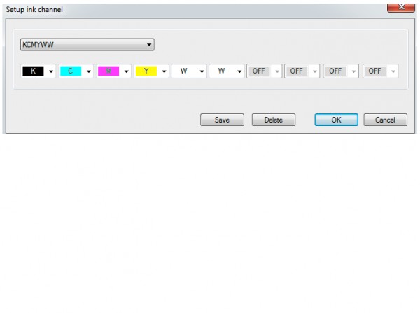 In order to print with White only you need to 1st make sure that you have your ink channels correctly set up. (in the Color tab) select the channels as they appear in your printer - below is an example only
